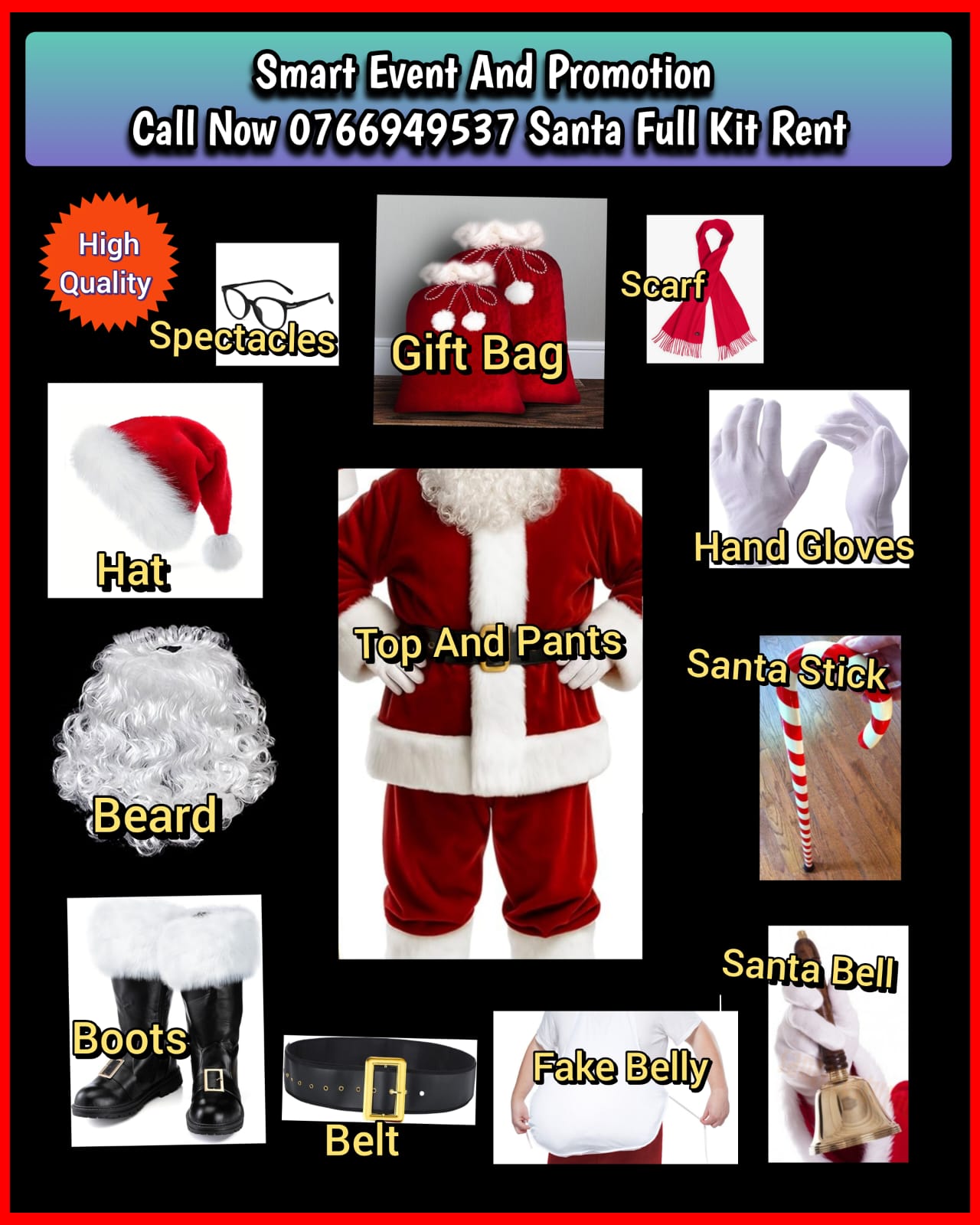Professional Santa costume in Colombo (full suit, boots, walking stick, fake beard)
